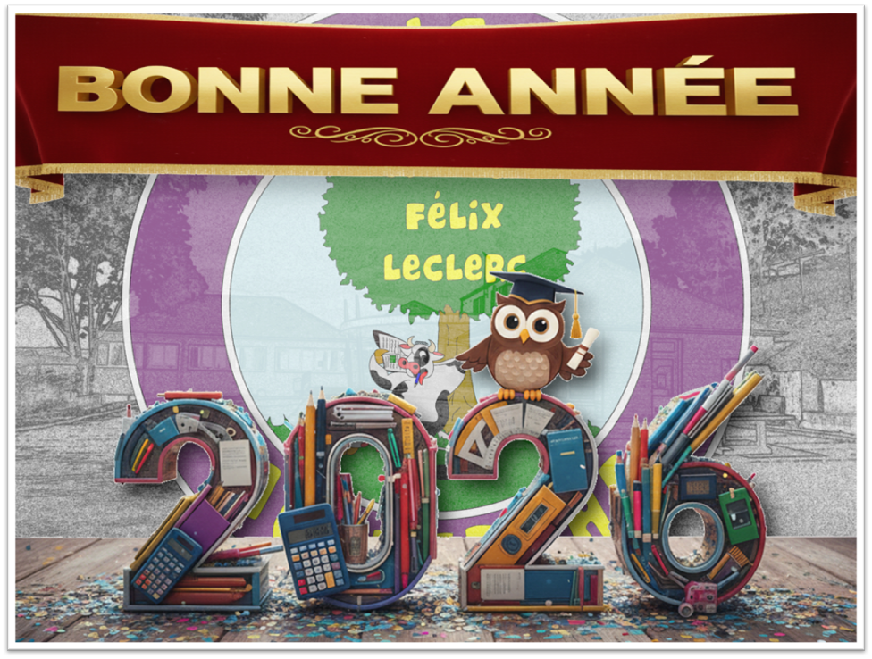 Très bonne année 2026 !!! Le Collège Félix Leclerc vous souhaite uneExcellente Année 2026et vous présente ainsi ses meilleurs vœux pour l’année à venir !!!